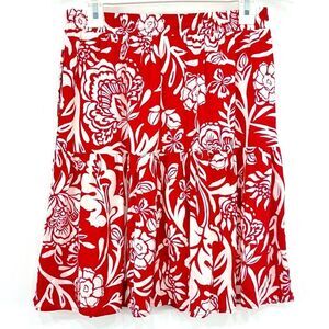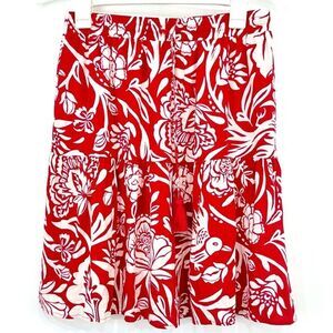 Knox Rose Red White Floral Bird Print Tassel Drawstring Tiered A Line Skirt