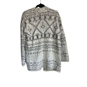Knox Rose Sweater Women Medium Gray White Tribal Print Long Sleeve Open Cardigan