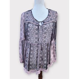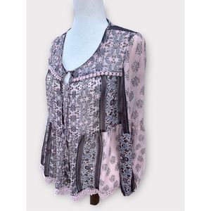 Knox Rose Womens Blouse Peplum Long Sleeve Floral Multicolor Small
