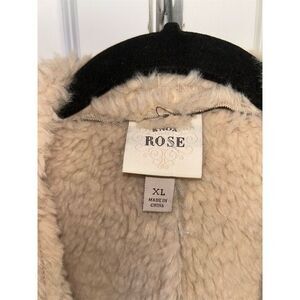 This Knox Rose vest in size XL is designed for women and features a solid brown color. It has a faux suede exterior and a cozy faux sherpa lining, making it suitable for casual outings or layering during cooler weather. The vest is made from polyester and has an open closure style. Manufactured in China, it is a basic jacket style that fits regular size types. The vest is pre-owned.