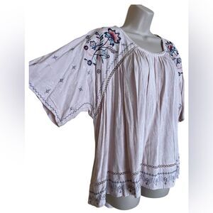 Knox Rose pink Flutter Sleeve Blouse with floral Embellished Details Large