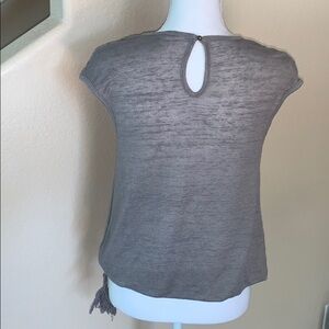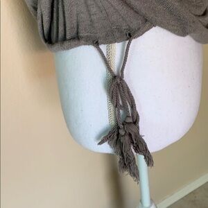 Preowned in good condition drawstring waist that is adjustable. The Tassels that are attached to the drawstring are a bit worn