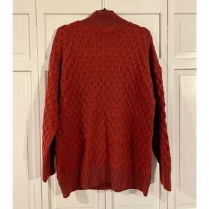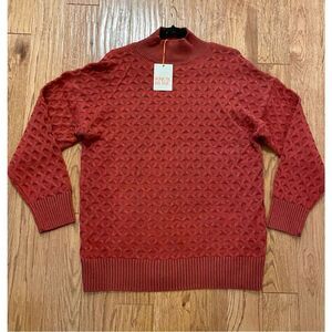 New with tags red pointelle knit sweater with mock neck and longer length. Oversized comfy fit.