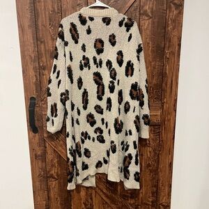 Knox rose women’s distressed tan cheetah print long cardigan sweater size large
