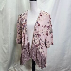 Knox Rose Dusty Pink Floral Open Front Kimono Size Medium