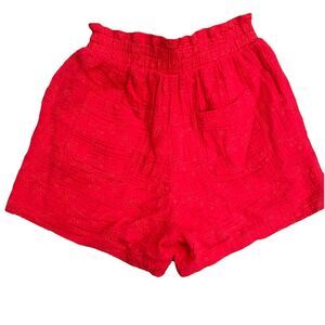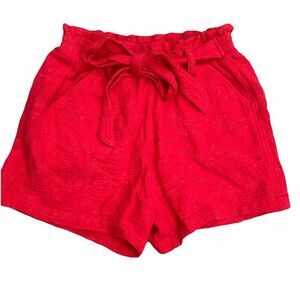 Knox Rose Rebel Red Pull-On Paperbag Tie Waist Eyelet Cotton Shorts Size XS