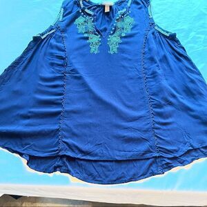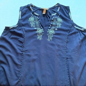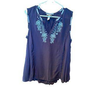 Knox Rose tank blouse dark blue XXL embroidery on front, detail at arm openings