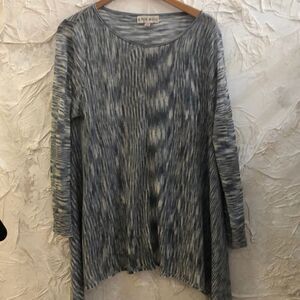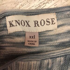 Knox Rose Beautiful lightweight knit longsleeve top. Features semi sheer soft cozy knit fabric. And asymmetrical bottom. Verigated denim blue/grayish color with Off-white. Size XXL in excellent condition.