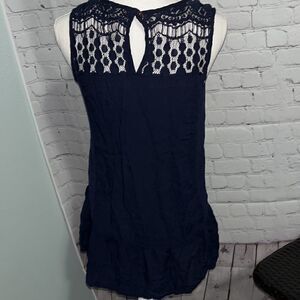 Knox Rose Navy Blue Sleeveless Blouse top Crochet lacy front Size S
