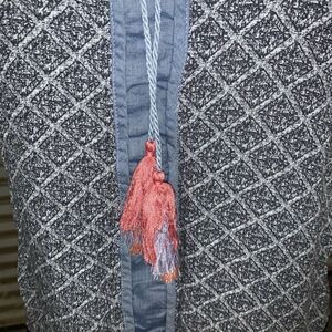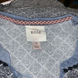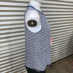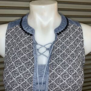 Knox Rose boho style sleeveless top black and white design with denim accents Gently used see photos for more details Women’s size small Unmarked T/B