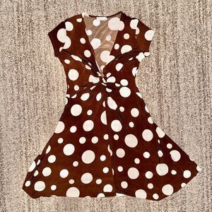KoKoon Women's Polka Dot Brown Short Sleeve Wrap Dress Size Medium