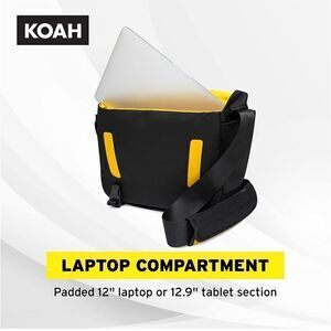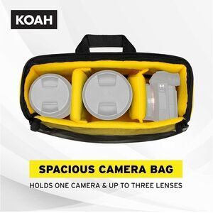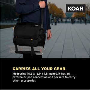 Keep all your photography gear by your side with the Koah Fulton Precision Camera Bag. Designed to meet the needs of the active and serious photographer, the Fulton is a stylish, durable and comfortable shoulder bag. Carries All Your Gear The spacious Koah Fulton Bag fits a DSLR or mirrorless camera and up to three lenses. The Fulton is also designed to carry a tripod externally and is equipped with pockets to carry other accessories. What's more, it features a 12-inch laptop/12.9-inch tablet compartment, padded for security. Designed Smart Durable and comfortable, the Koah Fulton protects against impacts and can be worn for long periods. In addition to its padded protective laptop compartments, the Fulton features a padded insert with touch-fastening dividers to keep your equipment organized. An adjustable padded shoulder strap and a chest/trolley strap provide superior comfort. The bag has a zippered top opening for easy access to your camera, a critical feature for capturing action on the go.