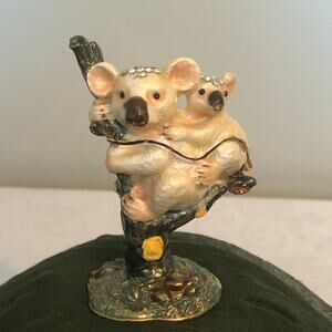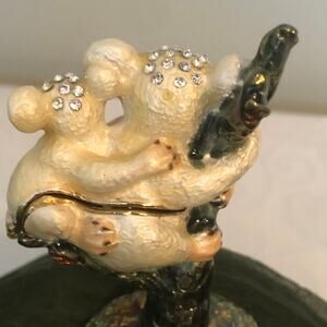 Koala Bear and Baby Bedazzled Enamel Trinket Box On A Bamboo Tree. Beautiful little trinket box. 2”x1 3/4