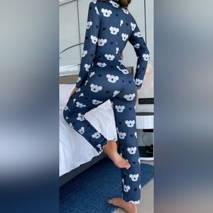 Koala & Heart Print Half Button Lettuce Trim Sleep Jumpsuit PJs Size small NWOT