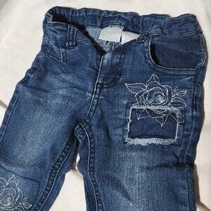 Koala Kids Girls Embroidered Jeans – Size 3T – Floral Patchwork & Distressed Detail