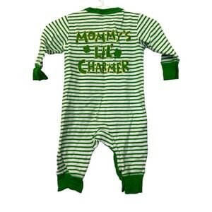 Koala Kids Mommy’s Lil Charmer Four Leaf Clover Green & White Striped Onesie