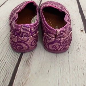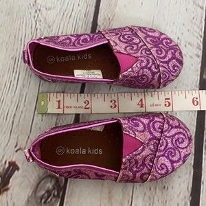 Does your toddler love glitter? Shiny things? These shoes are for them! These Koala Kids Alpargatas are hardly worn and have tons of life left in them. Rubber soles keep your toddler from slipping, and slip ons make them easy for your little to put on themselves. Runs about a size small--Ideal for a normal-sized 4 foot. See measurement.