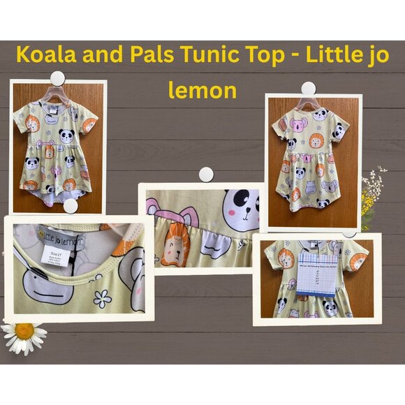 The Koala and Pals Tunic Top from Little jo lemon is a playful addition to any child's wardrobe. Bright, colorful, and featuring an adorable koala design, this top is both comfortable and stylish.