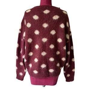 Koan Knitwear Pullover Sweater Large L Mohair Wool Blend Burgundy Red Cream Dot