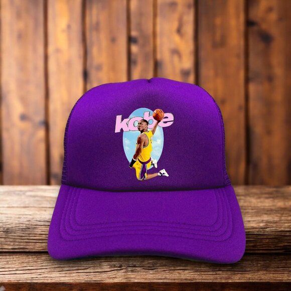 Kobe Bryant Inspired Mens Trucker Hat Purple LA Lakers Black Mamba Basketball