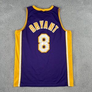 Kobe Bryant Jersey Nike Mens Large #8 Purple Gold Lakers NBA Sewn Vintage