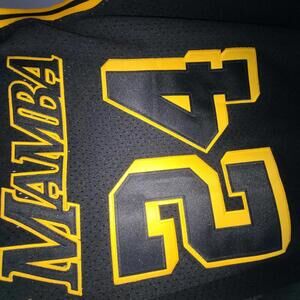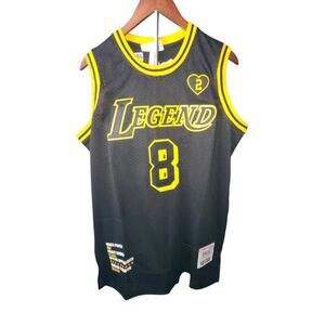 Show your love for the game with this exclusive Black Kobe Bryant jersey, featuring iconic designs and vibrant yellow detailing. Jersey is made with breathable mesh fabric for ultimate comfort on and off the court. Perfect for collectors and fans alike, this jersey represents two legendary numbers – 24 and 8 – for the unforgettable Mamba. Whether you're out playing ball or displaying your fan pride, this set is a must-have in any basketball enthusiast's wardrobe. - Features: Made from high-quality mesh - Colorful Mamba and Legend graphics - Durable for active wear and display - Perfect for collectors, fans, and players. Size Large