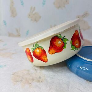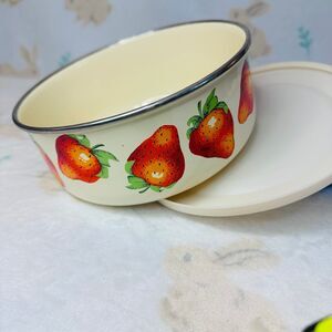 Kobe Strawberry & Cream Enamel Nesting Bowl w/Lid