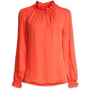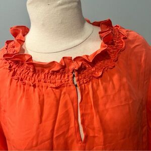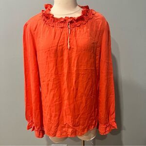 Kobi Halperin 100% Silk Orange Salene Smocked Long Sleeve Blouse Size Large