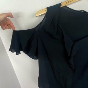 Kobi Halperin 100% Silk Rochelle Cold Shoulder Black Top Size XS Ruffle Blouse