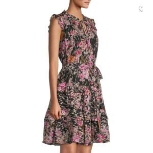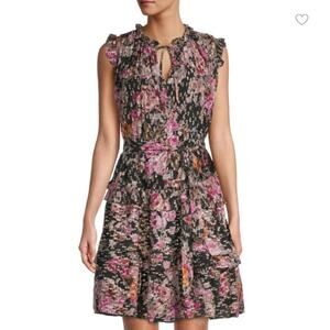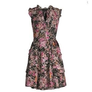 Kobi Halperin $648 Brook Black Gold Fleck Tiered Floral Mini Dress SZ XL