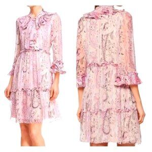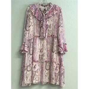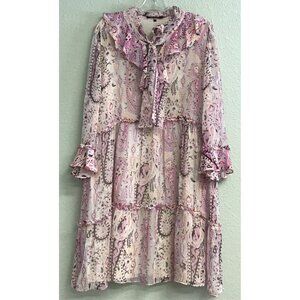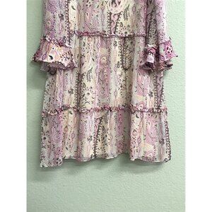 Kobi Halperin Andrea Pink 100% Silk Ruffle Tiered Minidress Size XL Boho Paisley