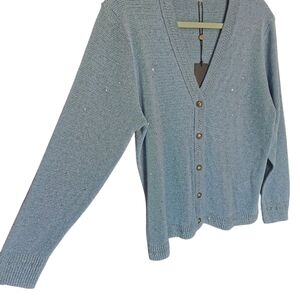 New with tags Kobi Halperin Anthia Sequin Button-Down Cardigan Sweater blue size large.