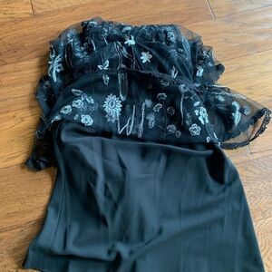Gorgeous Black and white embroidery floral fluted sleeve blouse sheer flowy overlay solid black adjustable spaghetti strap tank great condition smoke/pet free home