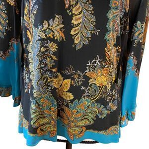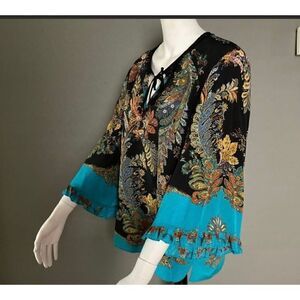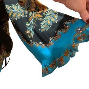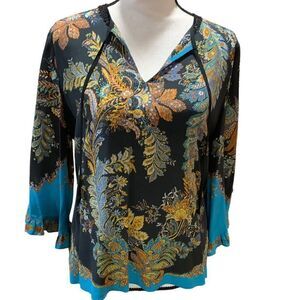 Kobi Halperin Boho Silk Blouse Multicolored, Flowing Fit, Lace Trim, EUC Small