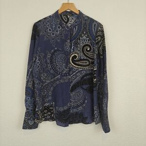Kobi Halperin Bronson Paisley-Print Silk Button Up Long Sleeves Blouse Size SM