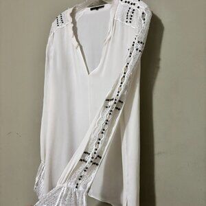 Kobi Halperin Carmella White Boho Lace & Beaded Sleeve Blouse – Size M