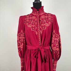 Kobi Halperin Cheryl Ruffle Trim Floral Embroidered Statement Belt Dress NWT