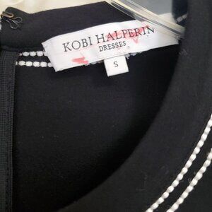 Kobi Halperin Dress Sz Small Bell Sleeve Stretch Knit Embroidered Above the Knee