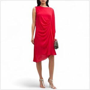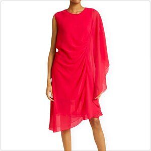 Kobi Halperin Fire Red Sheila Asymmetric One Cape Sleeve Dress NWT New S