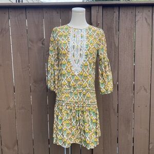 Kobi Halperin Lulu Silk Drop Waist Dress in Ivory Multicolor size XS
