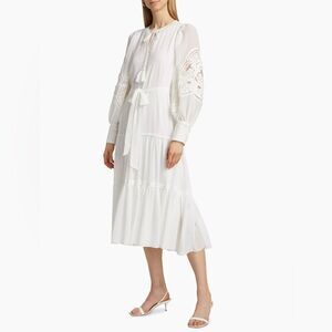 Kobi Halperin's charming Mira peasant midi-dress showcases a billowed design with blouson sleeves decorated by lace insets.