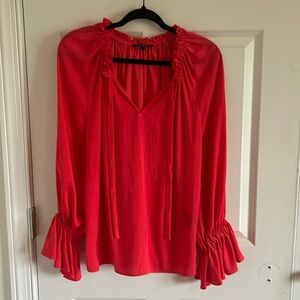 Kobi Halperin Pleated Frances V Neck Blouse Size Small Flamingo Pink