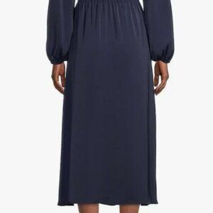 Elevate your wardrobe with the Kobi Halperin Rosanne Black Maxi Dress, a versatile piece that transitions effortlessly from day to night. Designed with a sophisticated mock neck and long puff sleeves, this dress features a sleek black color that flatters any skin tone. The dress is meticulously crafted from high-quality polyester and comes fully lined for added comfort and style. The elegant drawstring waist accentuates the silhouette, while the keyhole with buttons on the back of the neck adds a touch of grace. Whether you're attending a business meeting or a formal event, this dress is suitable for various occasions, including travel, weddings, holy communions, and cocktail parties. Carefully constructed in the Philippines, this garment requires dry cleaning to maintain its impeccable look. Size medium. It is new with tags, retailing at 398.00. It measures 22" across the front at the underarms. Total length is 54".