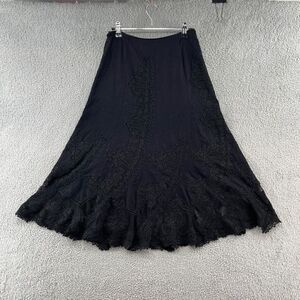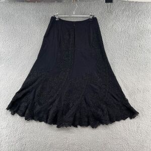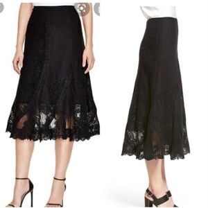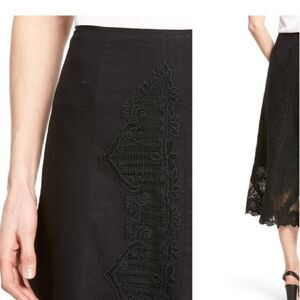 Kobi Halperin Rydel Lace Inset Midi Skirt Embroidered Linen Black Size 2