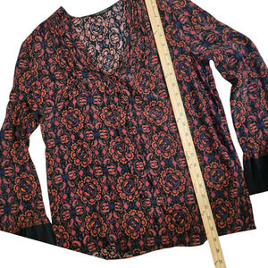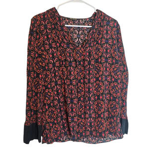 Kobi Halperin 100% Silk Blouse Size Small Boho Floral Print Black Red Top