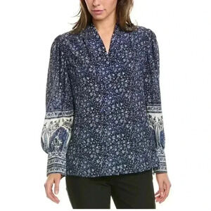 Kobi Halperin Silk Floral-Print Long Sleeve Sz xs Cottagecore V-neck Boho