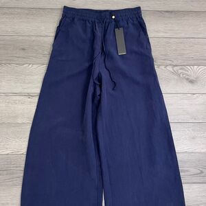 Kobi Halperin Size S Louise Blue Linen Tencel Pullon Wide Leg Pants NEW Trousers