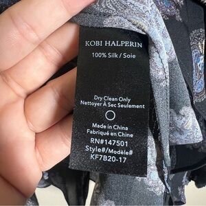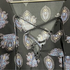 Kobi Halperin Womens Black Blue Paisley Ruffle Lace Up Sill Blouse Size Large