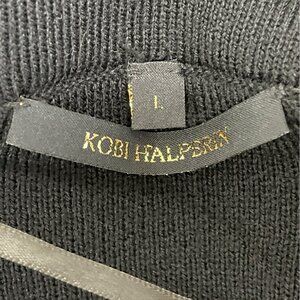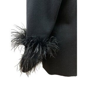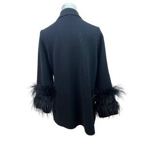Kobi Halperin Womens Black Open Front Cardigan With Feather Trim Sleeves Size L