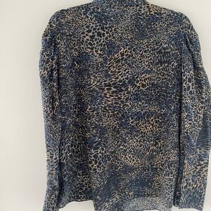 Kobi Halperin Women’s Blouse Size Medium Blue Brown Tan Silk Long Sleeve Silk